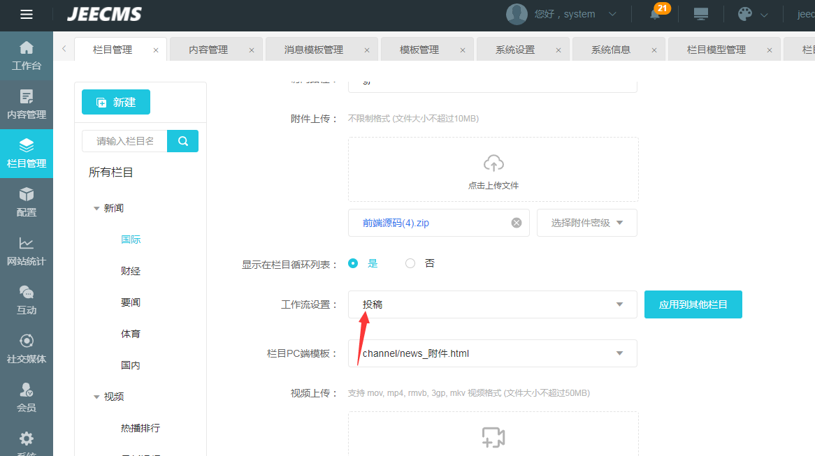 投稿对应栏目有没有引用工作流? |
