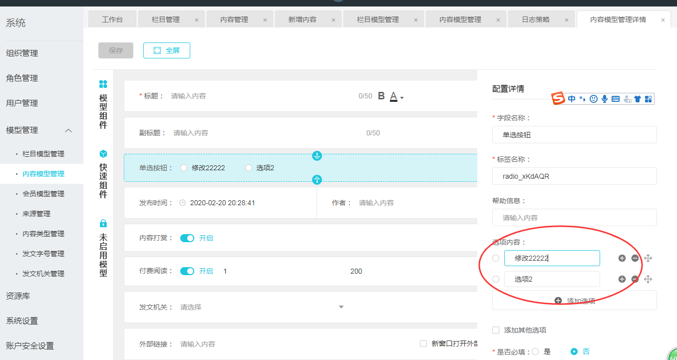 直接选项1 选项2 这值可以修改,点击修改就可以 |