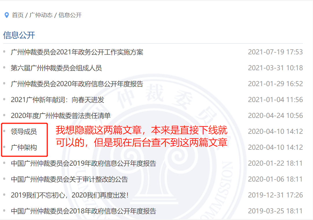 紧急!!我想下线这两篇文章,但是后台管理系统查不到这两篇文章,求助