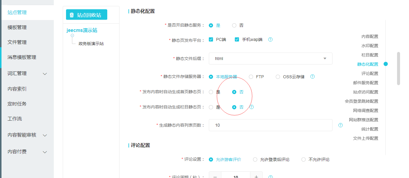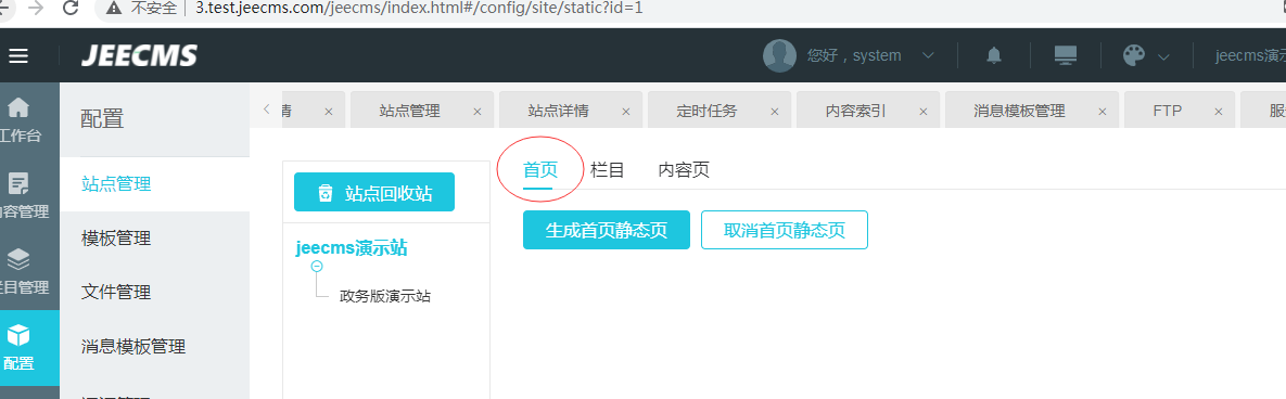 我的需求是要求生成静态化首页,内容发布的时候自动发布静态化首页,但是内容和栏目不生成静态页面