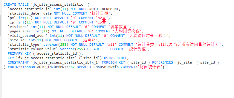 主题 : jc_site_access_statistic 表