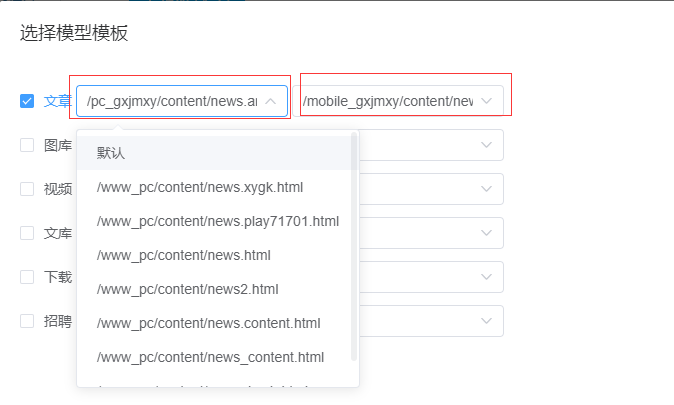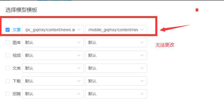 主题 : 您好!我*现栏目下的选择模型模板更改不了
