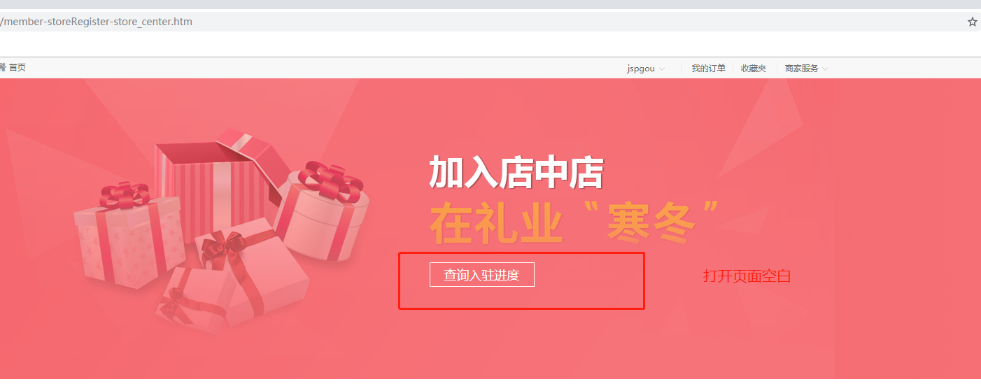 然后还有登录后,点商家入驻页面空白,查询入驻进度也空白页