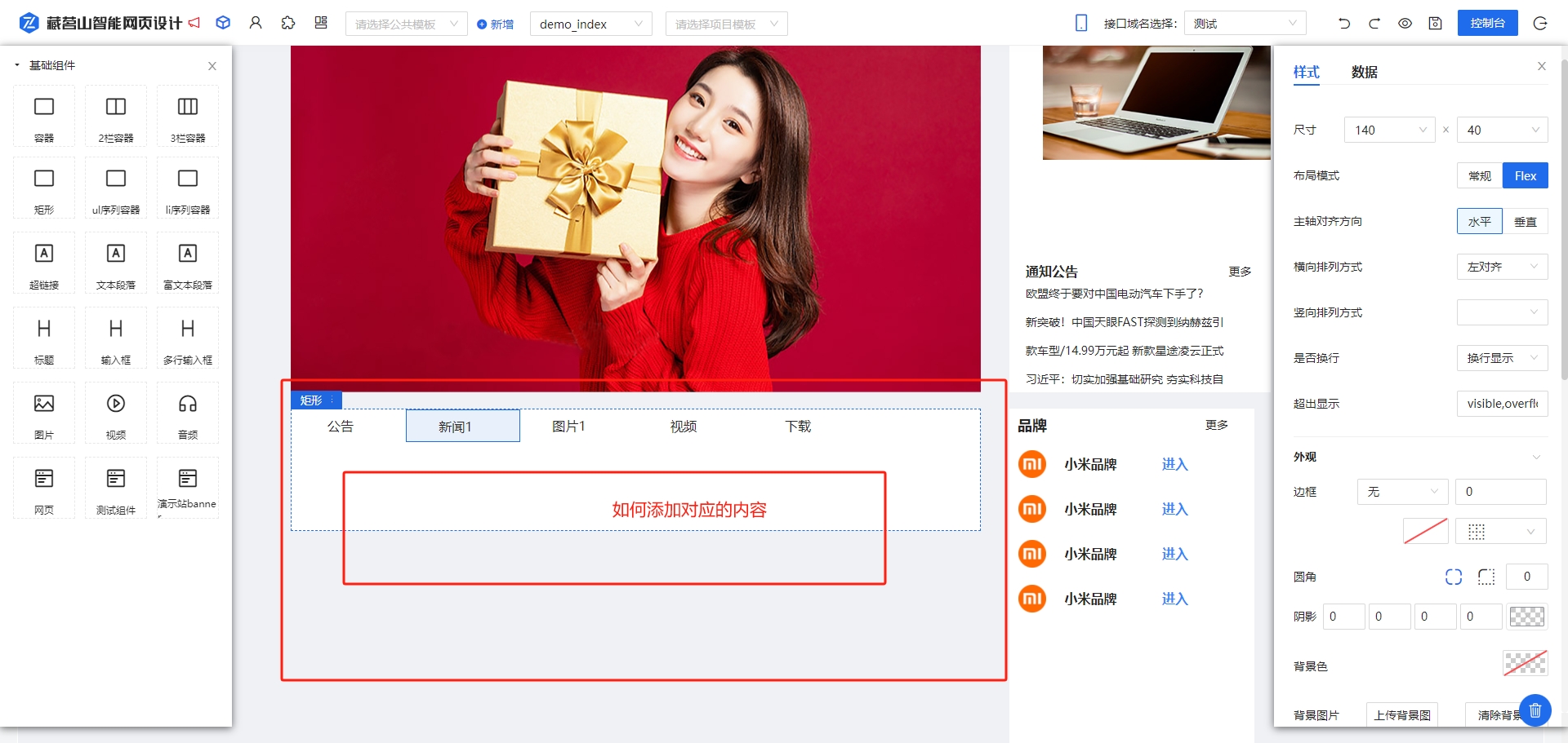 请问 还是昨天的这个问题 tab页签选的内容容器如何添加呢 我添加后发现是共用的 帮我解答一下这个吧