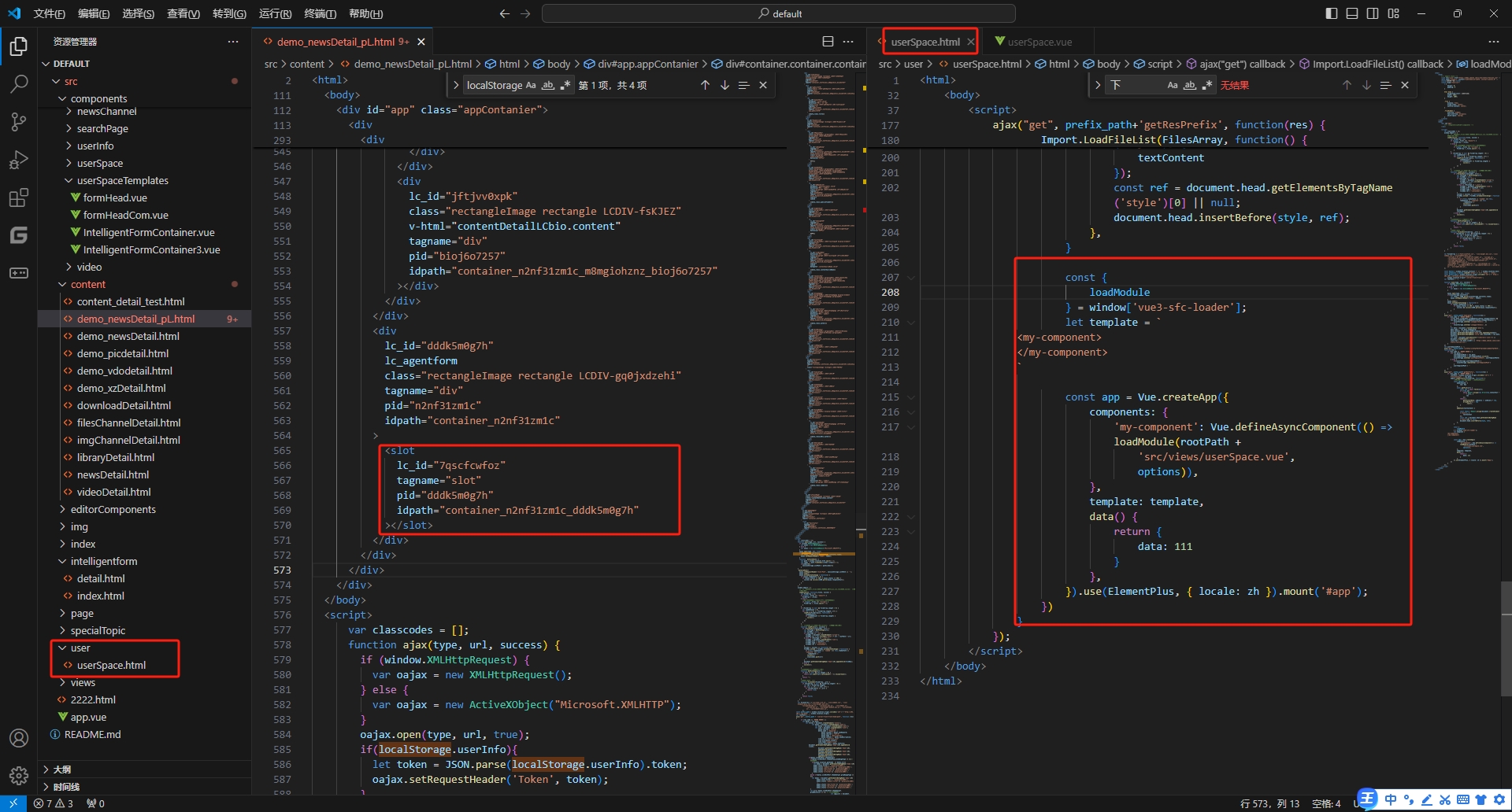 不行 我还是有点不太明白 个人中心之前的userSpace这个html文件是怎么来的,是低代码做的吗? 这个html里注册了组件 但是我用的智能表单确是slot标签 这也不一样啊