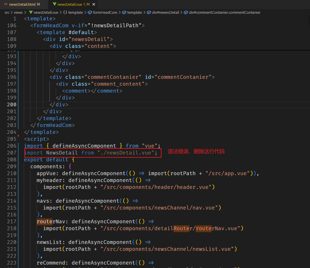 您做的低代码嵌套模板做的有问题,有报错