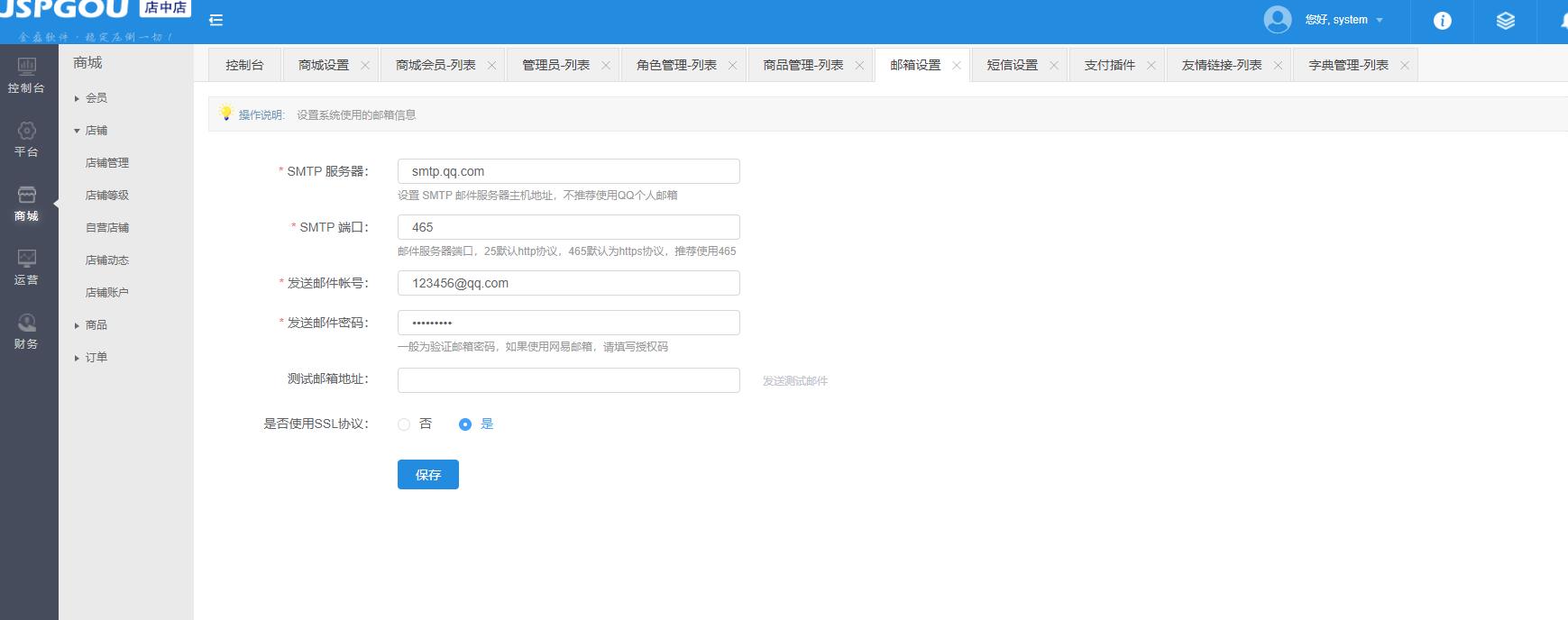 http://bjxfsddzd.test.jeecms.com/sys/index.html#/mailbox 需要再这里设置邮箱的 |