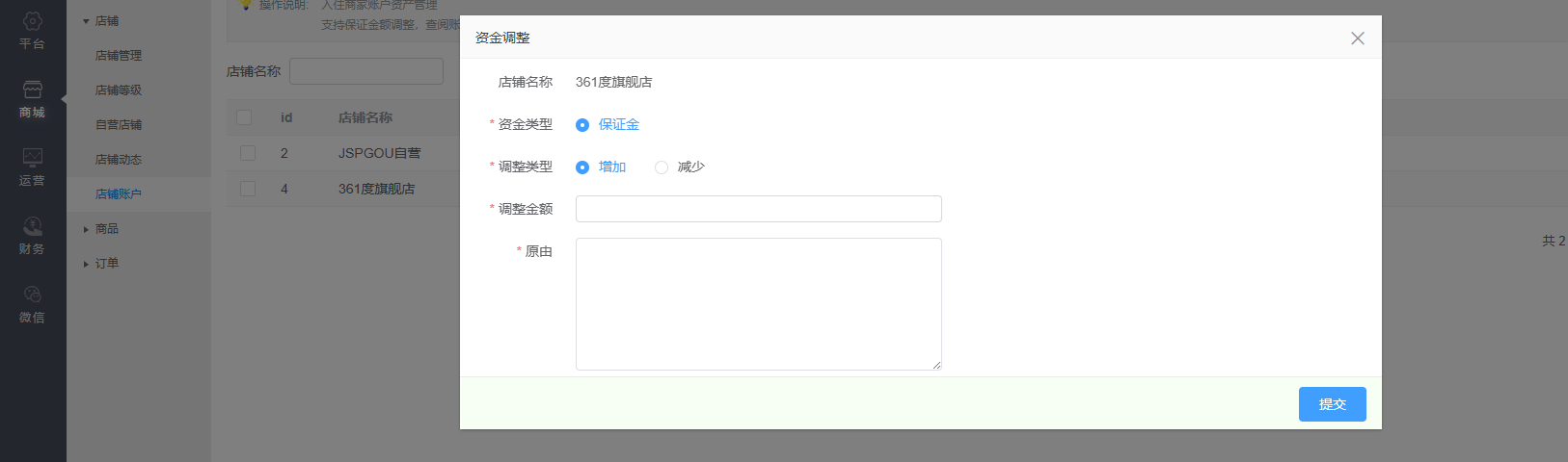 1、店铺入住的保证金 是固定1000吗? 这个可以调整吗? 2、这个入住店铺申请 被审核失败 我没办法去选择另一种个人的方式吗? 选择了企业就无法重新选择个人方式了吗? 3、我在后台把这个商城的会员删掉了,他对应的申请的店铺不会被删掉吗? 一直提示我店铺名称已经被使用 |
