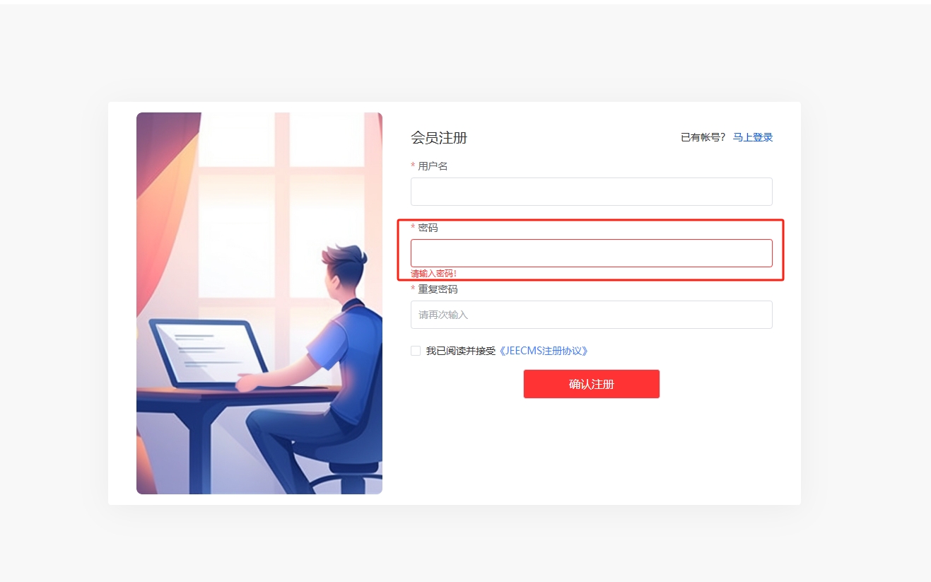 这个是注册页面 就是点击 “还没帐号? 立即注册” 之后的页面,没法输入密码,没法获取光标
