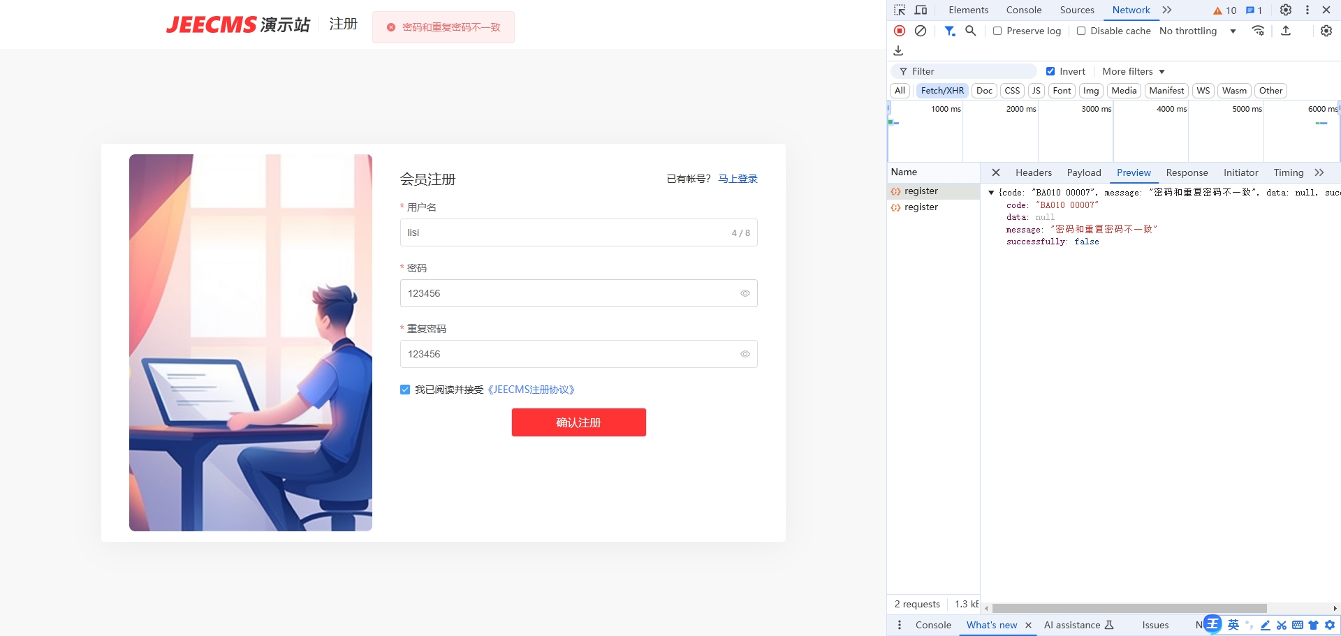 你好 我清除缓存后 第一次可以注册 第二次不跳转登录了 但是什么也没有