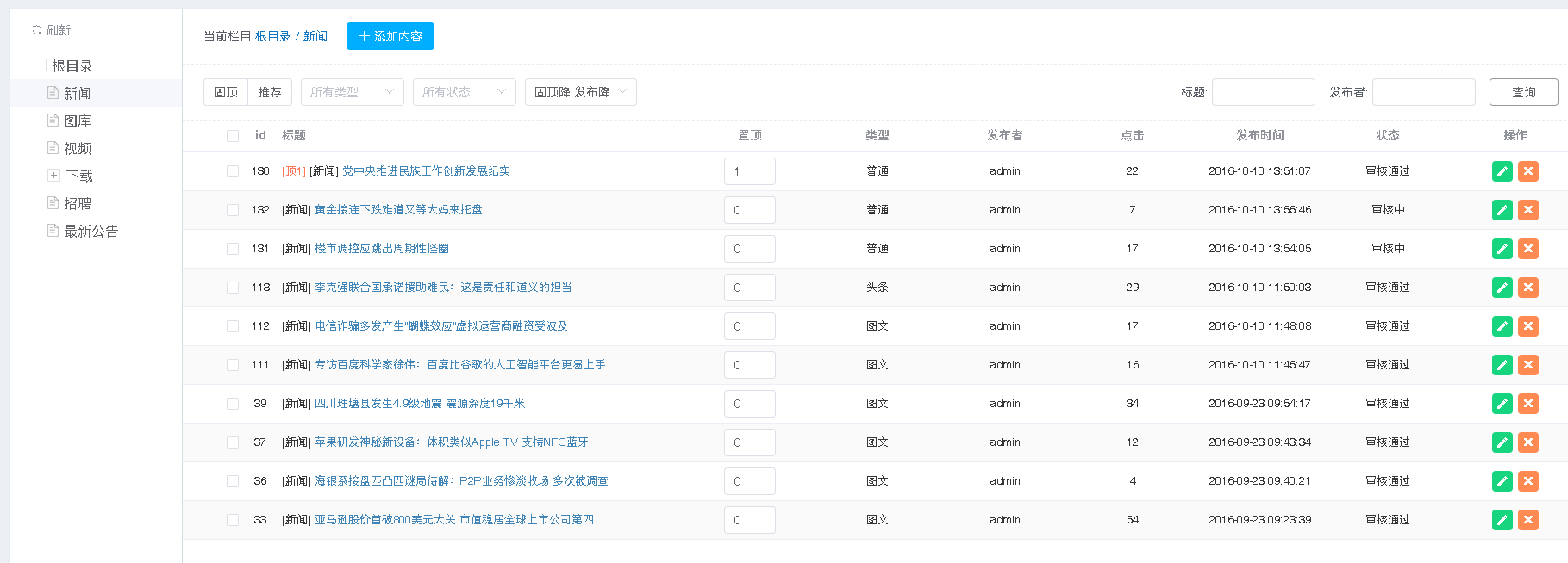 主题 : cms_content_list channelId='100' 新闻列表没有出现
