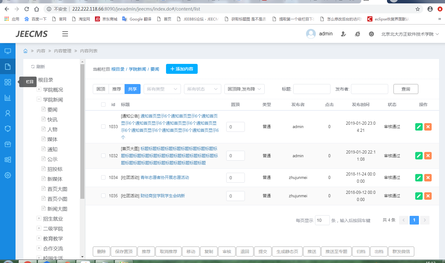 回复第15楼您好,您看下现在已经帮您把子站的四条内容引用到主站了,您那边就使用引用功能,引用和共享是一样的。