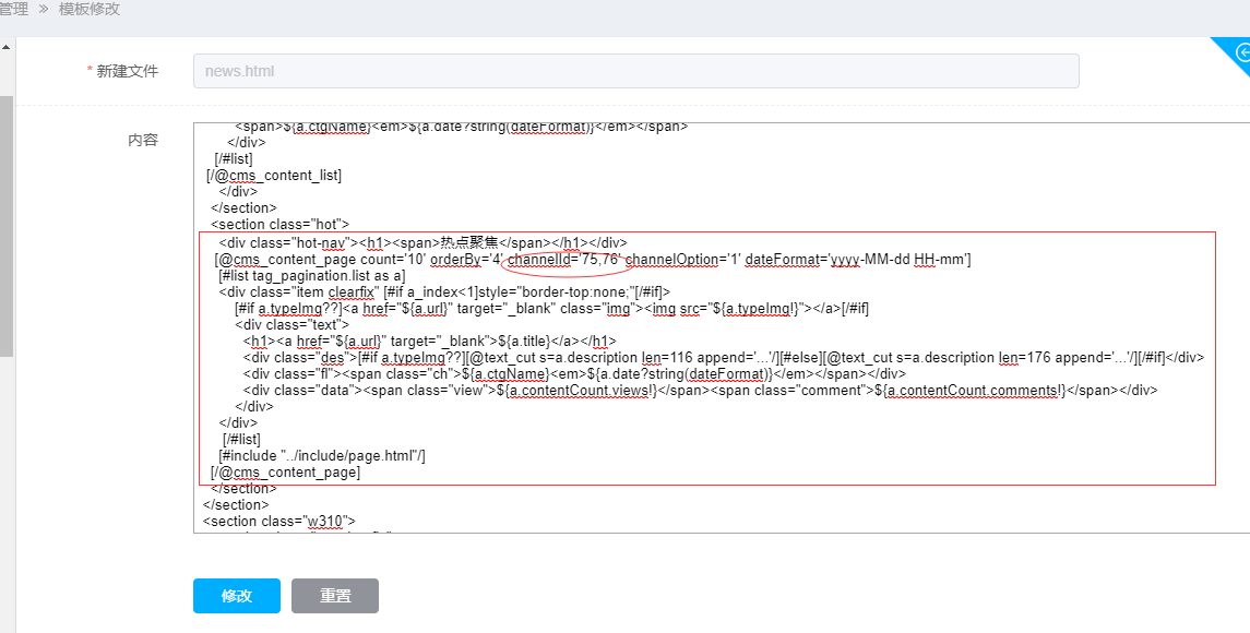 那您看下我上面的截图 这个是我刚刚做的 我的们的新闻栏目的模板 我给他加了个图库栏目 新闻栏目的id是75 图库的是76 我这样加后就可以了 等下我会把前台的效果图给您一起截图出来您可以看下效果 稍等
