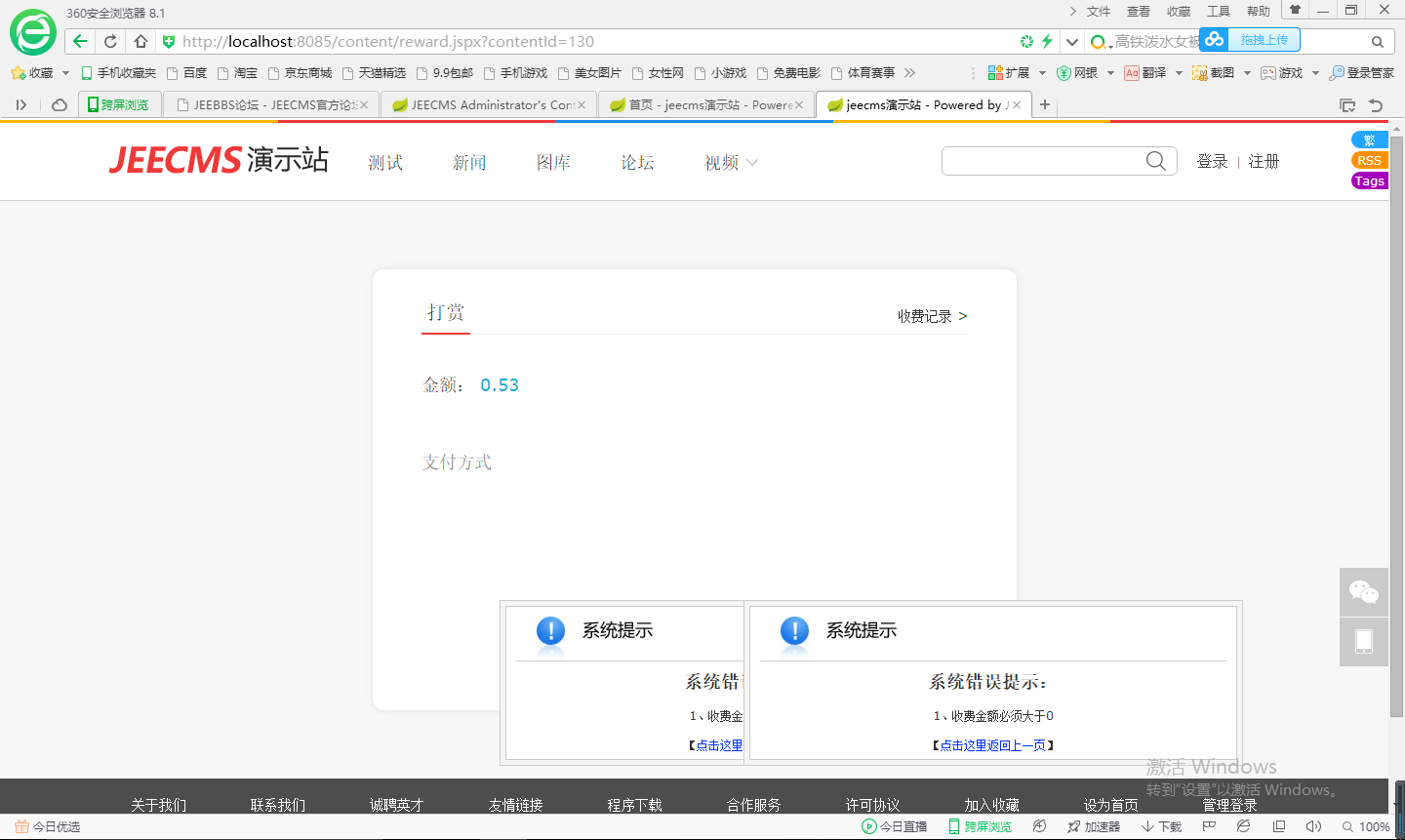 就是在后台内容哪里随便一个内容设置收费,然后在前台点击这个收费的内容,回跳到收费这个页面,就是这个收费的页面在哪里?