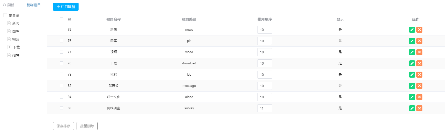 这和我操作有什么关系,就清空浏览器缓存,服务我也重启了,左边栏一直显示5个,新闻、图库、视频、下载、招聘