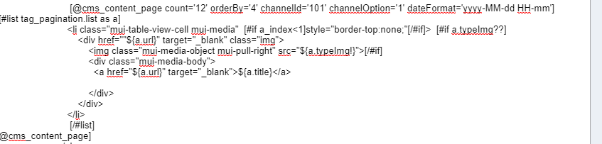 ![]() 我之前这样写的好使,我改个图文那个,还有a标签那个, 把cms中page改list了, |