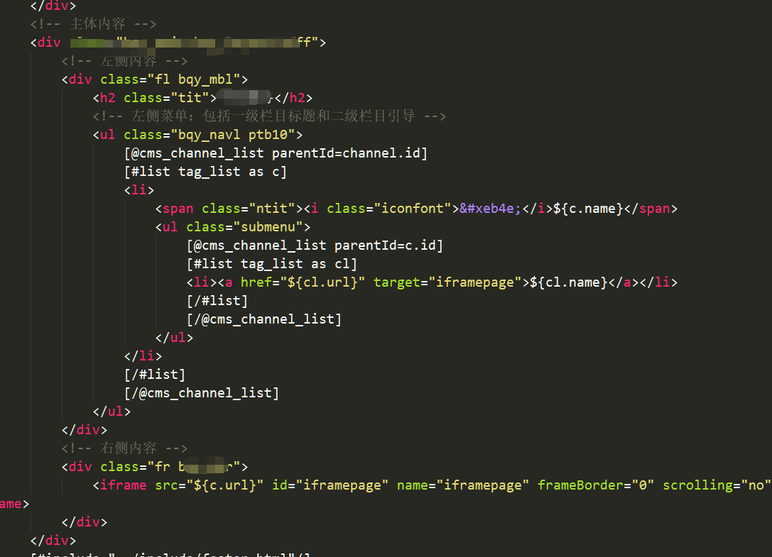 那这样得话,我这个A栏目下的模板是不是需要修改。 因为右侧ifarme是嵌在页面内的。 通过点击左侧2级栏目时右侧内容显示 已经完全懵逼了。 ![]() |