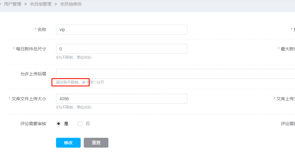 修改成默认组--vip vip上传附件限制--留空 ![]() ![]() 似乎不起作用 |