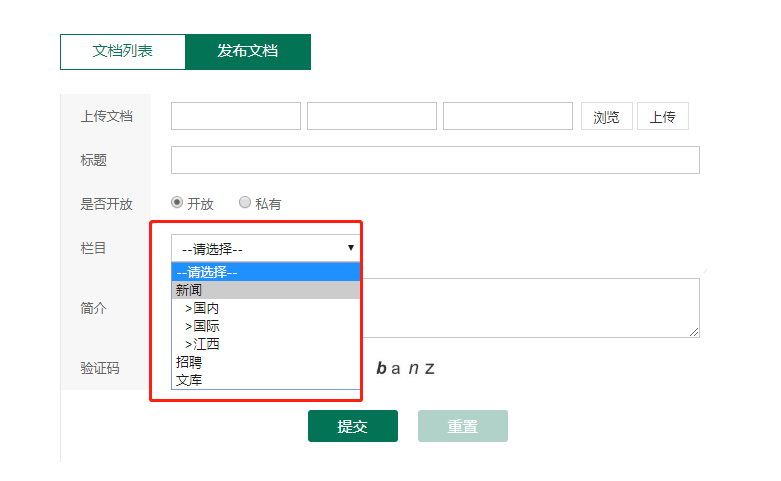 想让他改成后台的其他栏目    不选中后台的新闻、招聘、文库这几个栏目