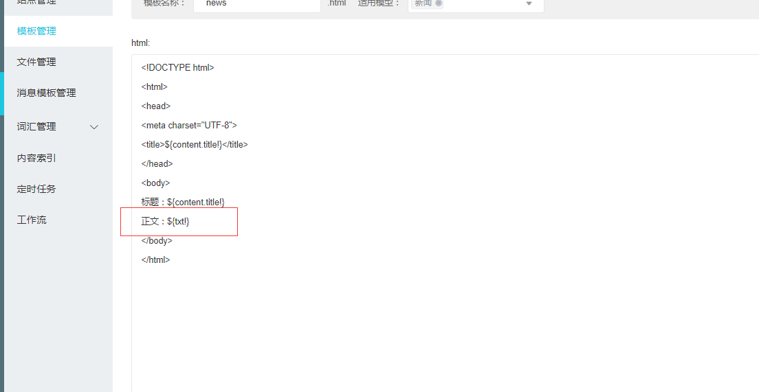 没效果,我猜测你说的是v9? 我记得老版本是txt,txt2,txt3之类的,且固定只有三个 jeecmsx的话,添加的富文本框可以设置该项的标签名称。如果是添加的是普通输入框,那么可以通过content.attr.标签名称.value获取到,但这个方法获取不到富文本框的值,所以想问下如何获取富文本框内容 |