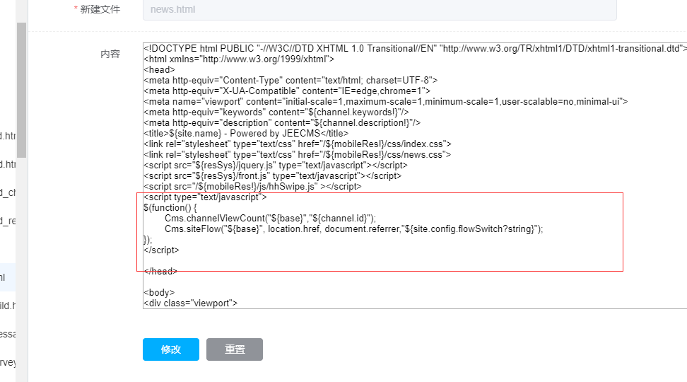 您项目删除了我们默认的手机模板吗?  我们默认的手机模板是有写的