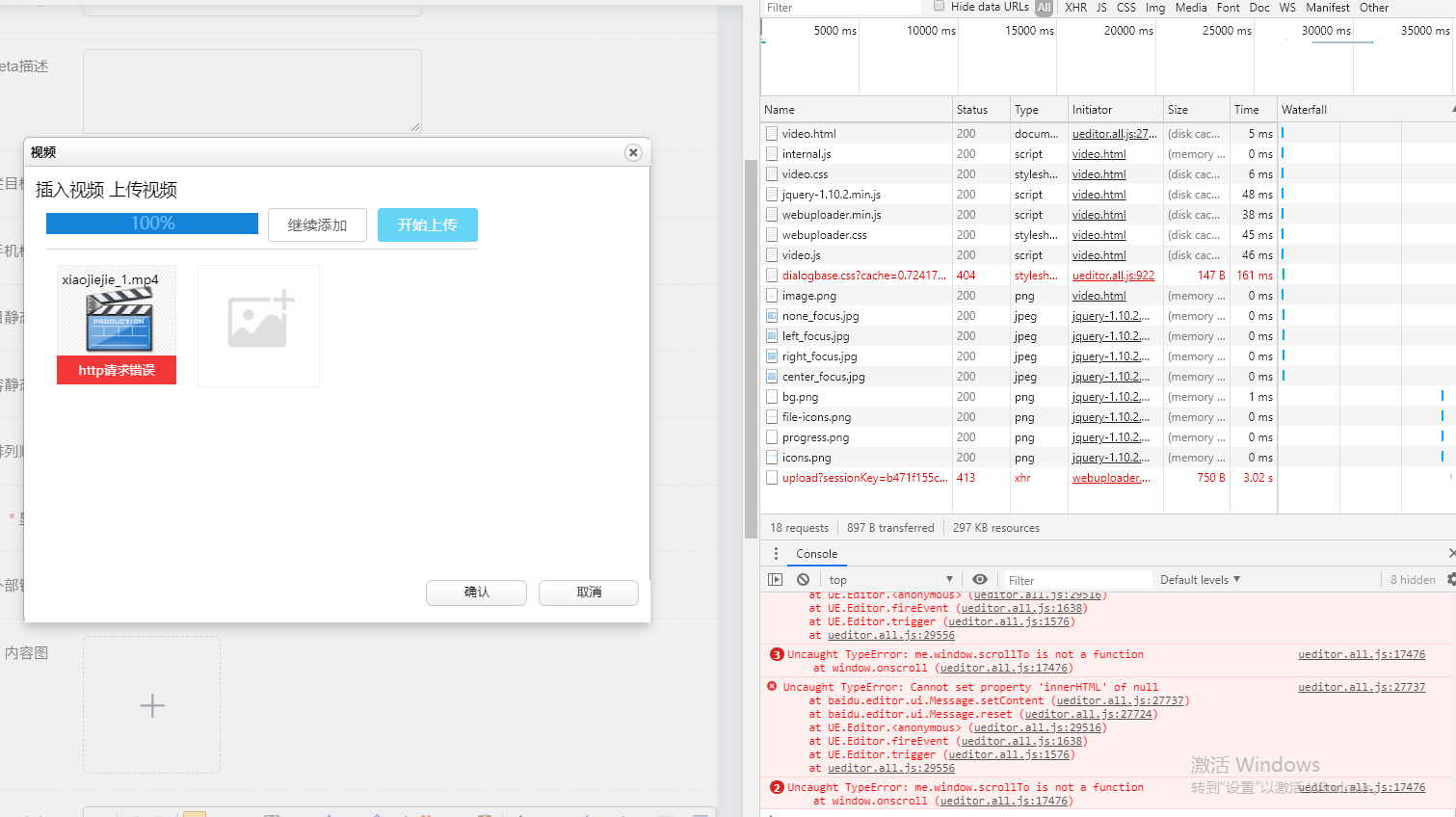 主题 : 后台上传视频,显示http请求错误怎么回事 |