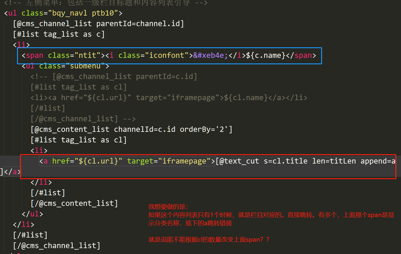 大概是类似于后台的这种左侧菜单理解来看, 需要的效果。点击对应的栏目/内容,右侧对应的ifarme嵌套内容 左侧我不知道是用栏目还是内容列表来维护。 需要动态维护,不能写死。 ![]() |