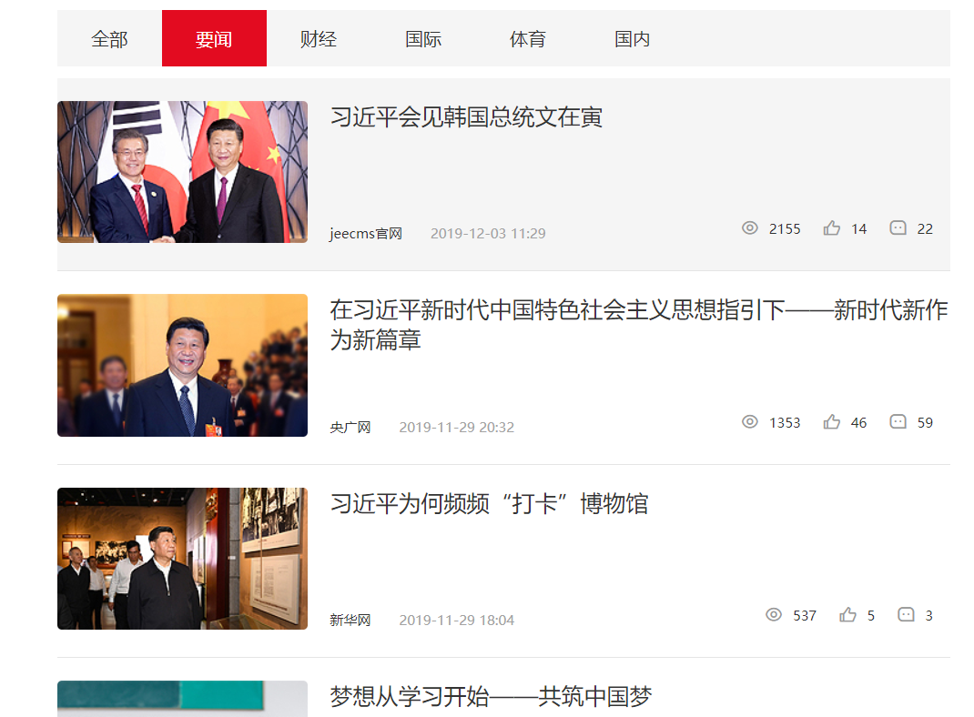 [#list tag_pagination.content as a] <div class="item"> <div class="item-left"> <img src="${(a.attr.xinwenliebiaotu.resUrl)!}" alt=""> </div> <div class="item-right"> <a href="${a.url}" class="Regular" target="_blank">${a.title!}</a> <div class="bottom Semilight"> <ul> <li>[#if a.source?? && a.source.sourceName?? && a.source.sourceName != ""]${(a.source.sourceName)}[#else]JEECMS演示站[/#if]</li> <li class="time">${a.releaseTimeString!}</li> <!-- <li><i class="iconfont iconshare-line"></i>500</li> --> <li class="box clearfix"> <a class="uicon fr "><i class="iconfont iconliulang"></i><span>${a.views!}</span></a> <a class="uicon fr hover ups"><i class="iconfont iconthumb-up-line"></i><span>${a.ups!}</span></a> <a class="uicon fr hover comments" href="${a.url}?comments=1" target="_blank"><i class="iconfont iconmessage--line1"></i><span>${a.comments!}</span> </a> </li> </ul> </div> <div class="addone none">+1</div> </div> <div class="clearfix"></div> </div> [/#list] [/@cms_content_page] |