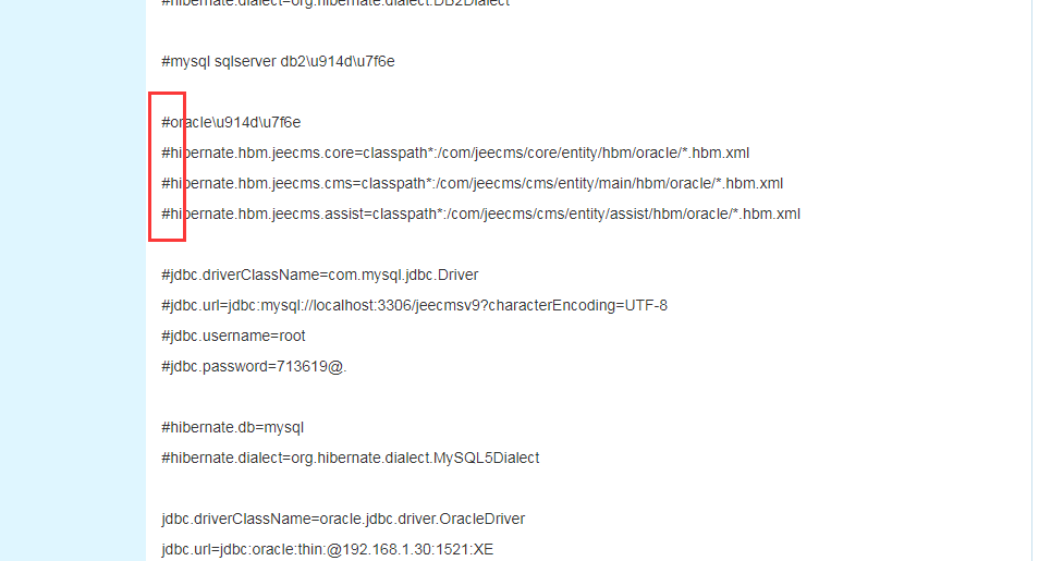 #mysql\u914d\u7f6e #jdbc.driverClassName=com.mysql.jdbc.Driver #jdbc.url=jdbc:mysql://192.168.0.173:3306/jeecmsv9?characterEncoding=UTF-8 #jdbc.username=root #jdbc.password=password #hibernate.db=mysql #hibernate.dialect=org.hibernate.dialect.MySQL5Dialect #jeecmsv9 #oracle #jdbc.driverClassName=oracle.jdbc.driver.OracleDriver #jdbc.url=jdbc:oracle:thin:@192.168.0.2:1522:ORCL11G #jdbc.username=jeecmsv81 #jdbc.password=password #hibernate.db=oracle #hibernate.dialect=org.hibernate.dialect.Oracle10gDialect #sqlserver #jdbc.driverClassName=com.microsoft.sqlserver.jdbc.SQLServerDriver #jdbc.url=jdbc:sqlserver://192.168.0.132:1433;DatabaseName=jeecmsv81 #jdbc.username=sa #jdbc.password=mingming_chen #hibernate.db=sqlserver #hibernate.dialect=org.hibernate.dialect.SQLServerDialect #db2 #jdbc.driverClassName=com.ibm.db2.jcc.DB2Driver #jdbc.url=jdbc:db2://localhost:50000/cmsv81 #jdbc.username=Administrator #jdbc.password=password #hibernate.db=db2 #hibernate.dialect=org.hibernate.dialect.DB2Dialect #mysql sqlserver db2\u914d\u7f6e #oracle\u914d\u7f6e #hibernate.hbm.jeecms.core=classpath*:/com/jeecms/core/entity/hbm/oracle/*.hbm.xml #hibernate.hbm.jeecms.cms=classpath*:/com/jeecms/cms/entity/main/hbm/oracle/*.hbm.xml #hibernate.hbm.jeecms.assist=classpath*:/com/jeecms/cms/entity/assist/hbm/oracle/*.hbm.xml #jdbc.driverClassName=com.mysql.jdbc.Driver #jdbc.url=jdbc:mysql://localhost:3306/jeecmsv9?characterEncoding=UTF-8 #jdbc.username=root #jdbc.password=713619@. #hibernate.db=mysql #hibernate.dialect=org.hibernate.dialect.MySQL5Dialect jdbc.driverClassName=oracle.jdbc.driver.OracleDriver jdbc.url=jdbc:oracle:thin:@192.168.1.30:1521:XE jdbc.username=news jdbc.password=news hibernate.db=oracle hibernate.dialect=org.hibernate.dialect.Oracle10gDialect hibernate.hbm.jeecms.core=classpath*:/com/jeecms/core/entity/hbm/common/*.hbm.xml hibernate.hbm.jeecms.cms=classpath*:/com/jeecms/cms/entity/main/hbm/common/*.hbm.xml hibernate.hbm.jeecms.assist=classpath*:/com/jeecms/cms/entity/assist/hbm/common/*.hbm.xml cpool.checkoutTimeout=5000 cpool.minPoolSize=20 cpool.maxPoolSize=100 cpool.maxIdleTime=7200 cpool.maxIdleTimeExcessConnections=1800 cpool.acquireIncrement=10 |
