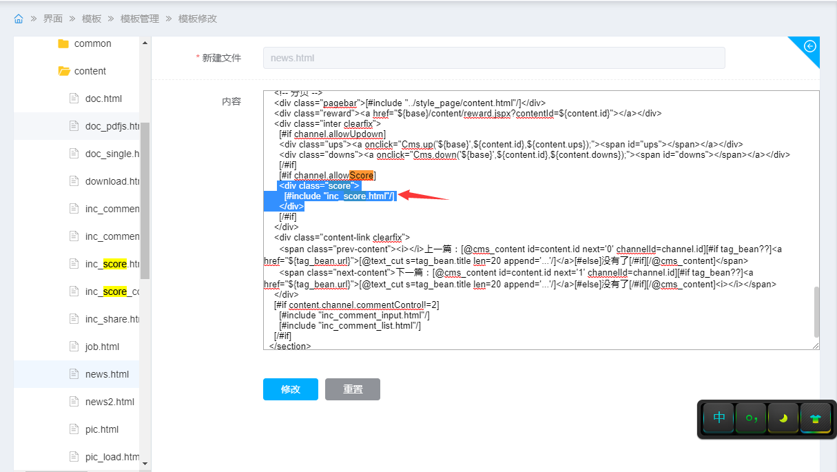 麻烦看看,新闻内容模板 news2.html中,怎么把图片中内容注释/删除? ![]() |