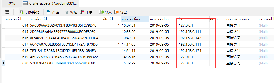 回复第19楼 192.168.0.114 这个访问过但一直没存进去 数据库也就没有。我的是本地127.0.0.1