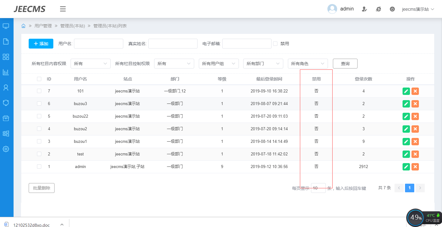 回复第30楼   我刚看了一下,你们这个对全站管理员的禁用就是对本站的禁用。但是本站管理里边的禁用没有作用。