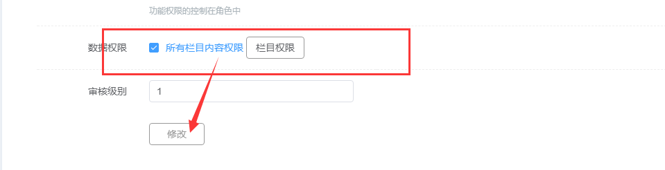 数据权限改为全部,修改不可用 |