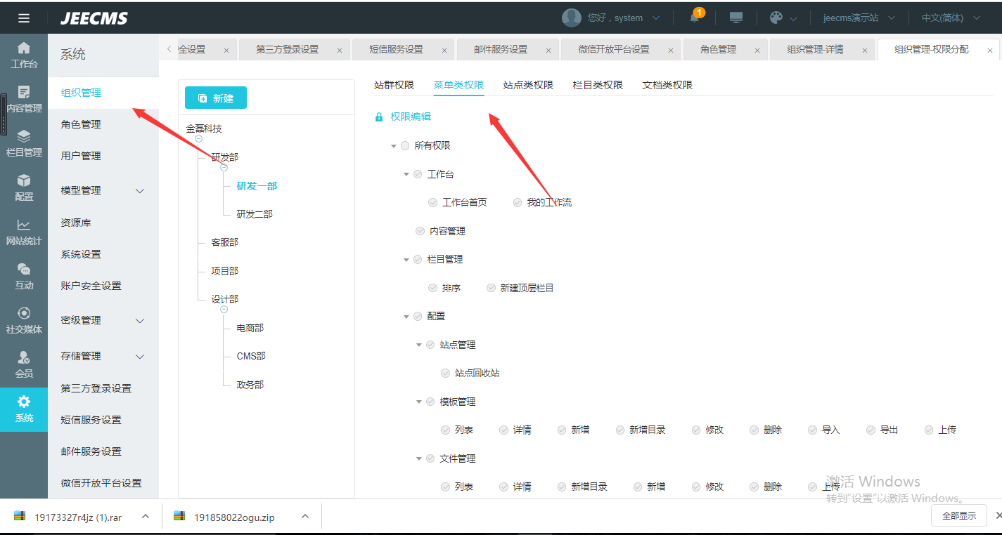 好的,比如说我们这块一个大的组织下有很多部门,比如科技发展部,网络与数据管理部门等,我们希望网络与数据管理部门下的人只能看内容管理这个栏目,其他的都看不到 |