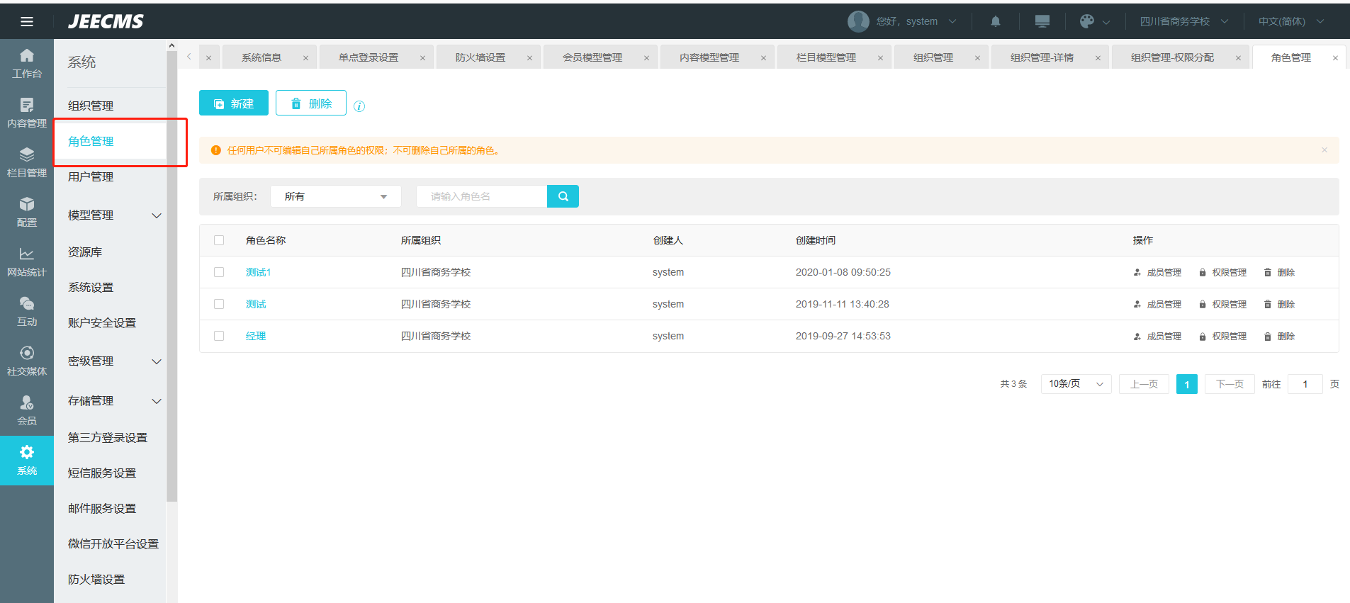部门管理权限在哪里?角色不行吗?我用的角色。