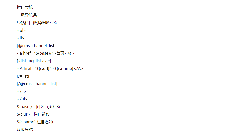 <a href="${a.url}"> ${a.name} </a> [/#list] 这个不是调用的栏目名字和链接吗 |