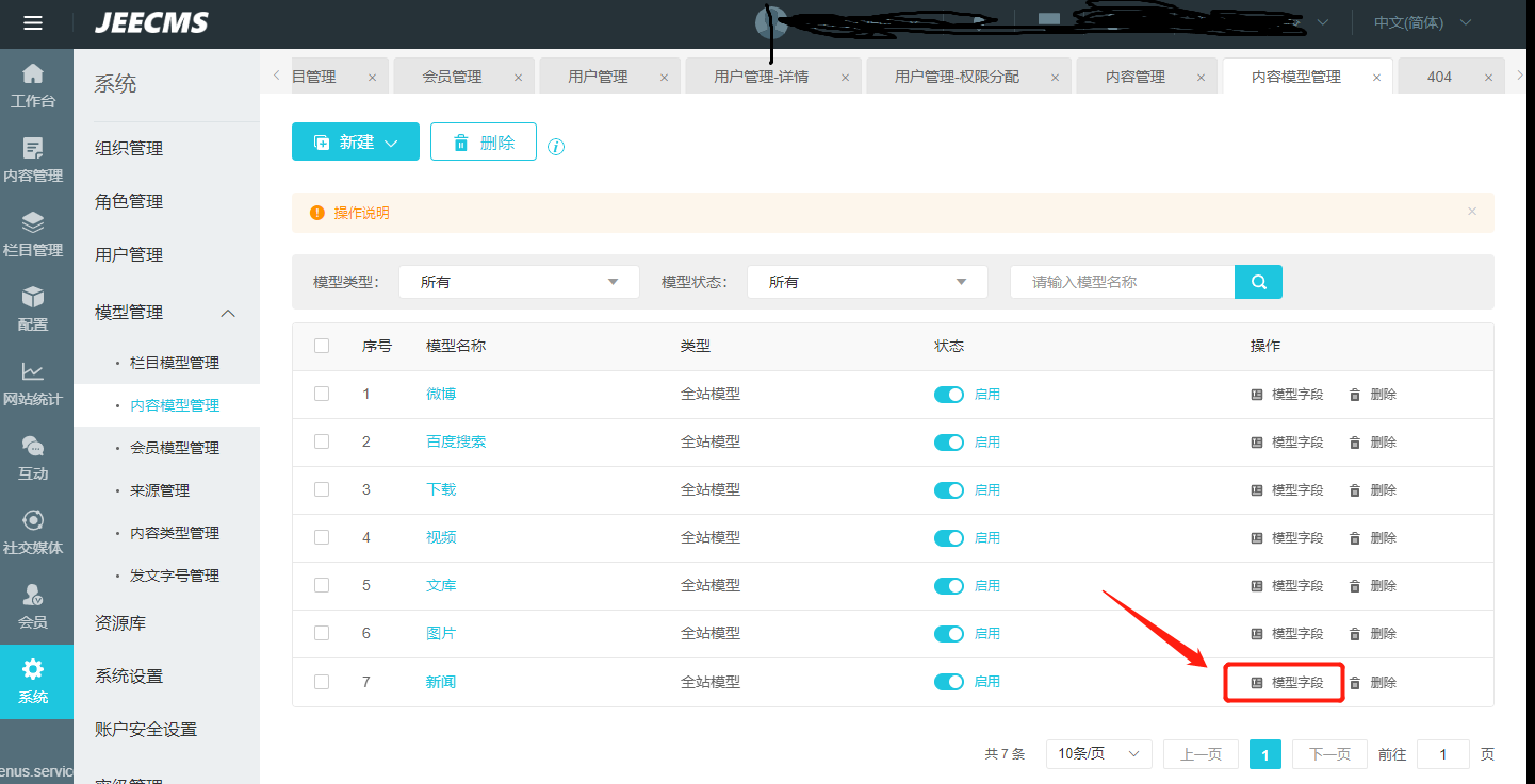 自己新建的模型也是报这个错。内容模型字段无法查看。