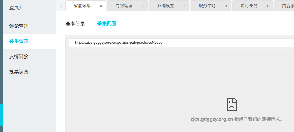 您这个采集地址的网站不允许您的链接了  那您试下用新浪新闻的地址采集看下