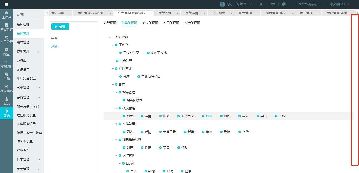 1、‘菜单管理里调用下’是指在菜单管理-接口管理里添加这个接口,还是在菜单管理-菜单管理里把这个接口作为菜单添加? 2、角色功能权限那里有个bug,页面无法下拉,因为没有滚动条,如下图: ![]() 3、我看用户管理里本身就有权限分配,可以直接勾选,为什么还要再在角色里选一遍? 4、我现在用的是system用户,没有角色 |
