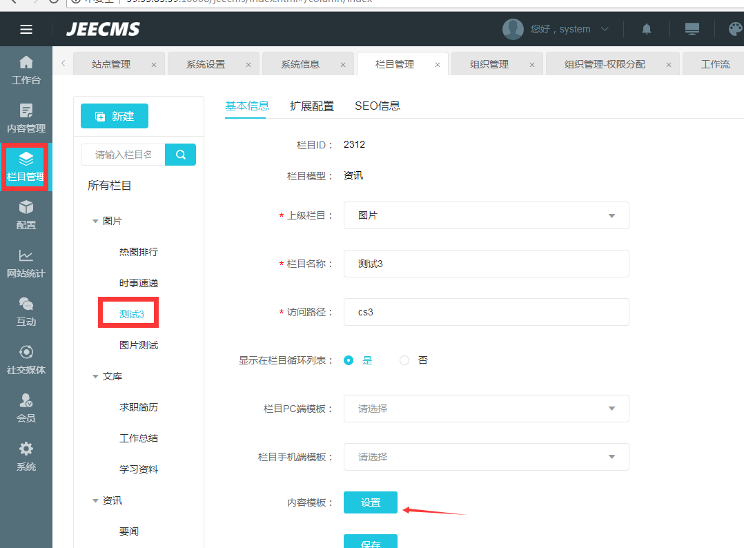 主题 : 不同栏目对应不同内容模型是在哪里配置的?