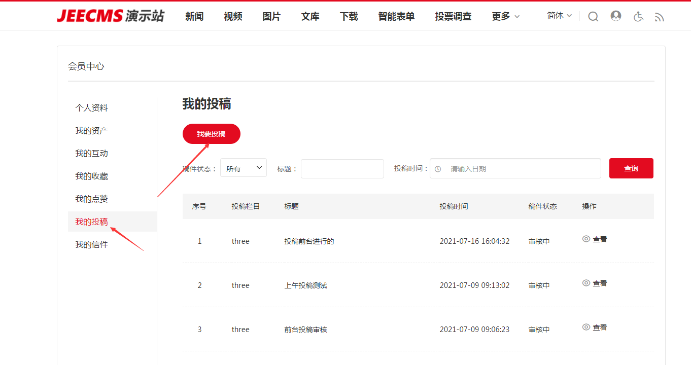1 投稿使用的是统一的模型--内容审核。与内容管理中各个栏目的设置会不同。