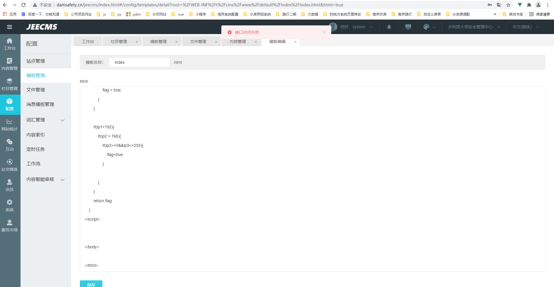 主题 : X1系统修改模板,点击保存显示接口访问失败,无法保存