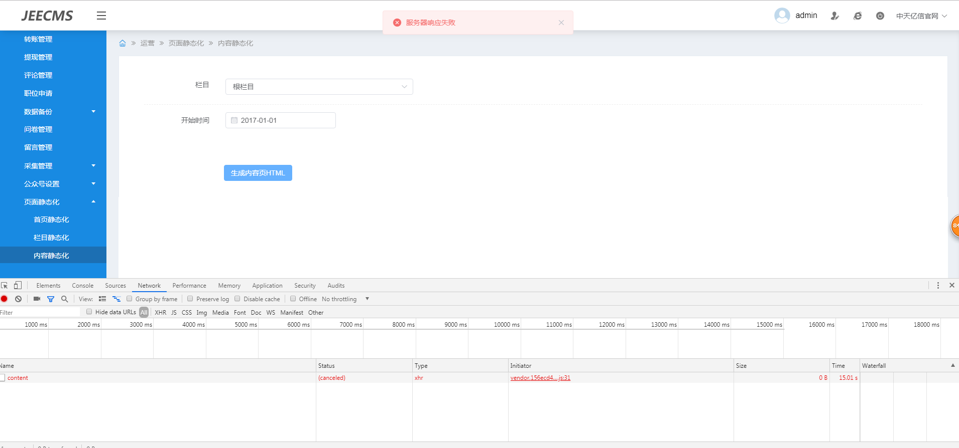 请问静态化内容页的时候,有哦时候可以成功有时候提示图片中错误是什么原因呢,是直接用的root包启动的