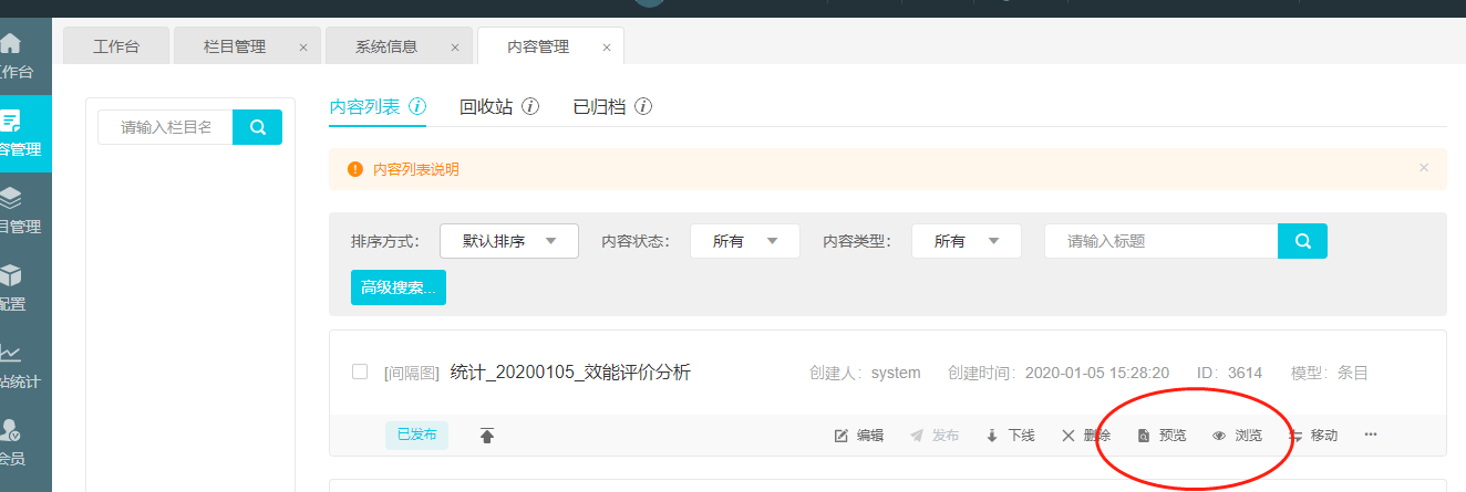 主题 : 后台管理,内容管理列表中是否可以隐藏具体功能 |