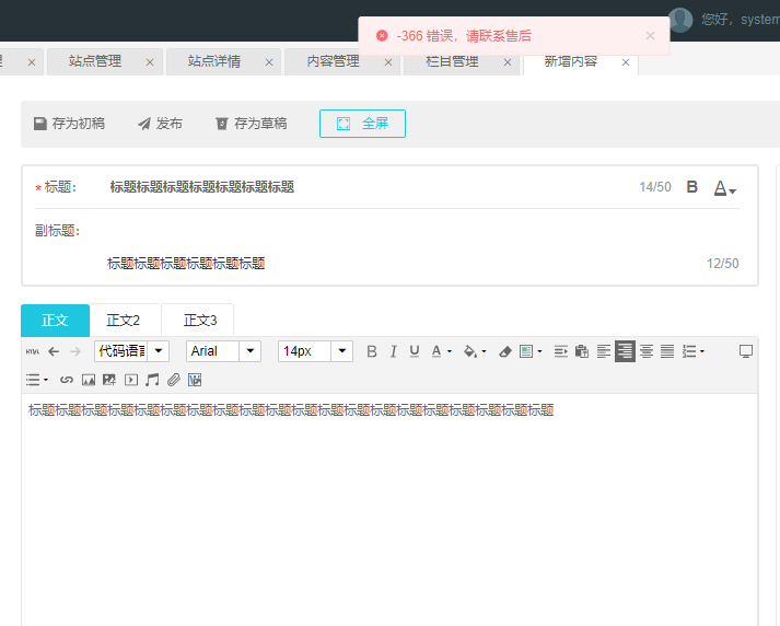 主题 : 后台*布新闻出现:-366 错误,请联系售后 |