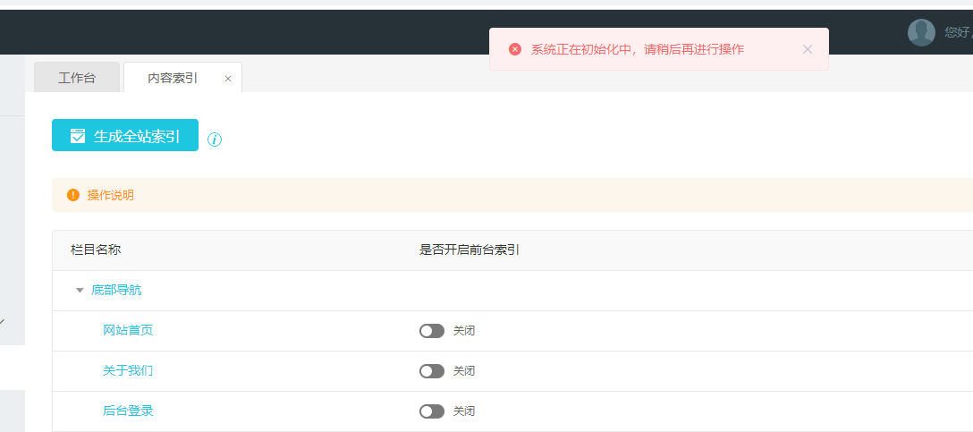 主题 : X1.1生成索引一直提示系统初始化中,请稍后再试